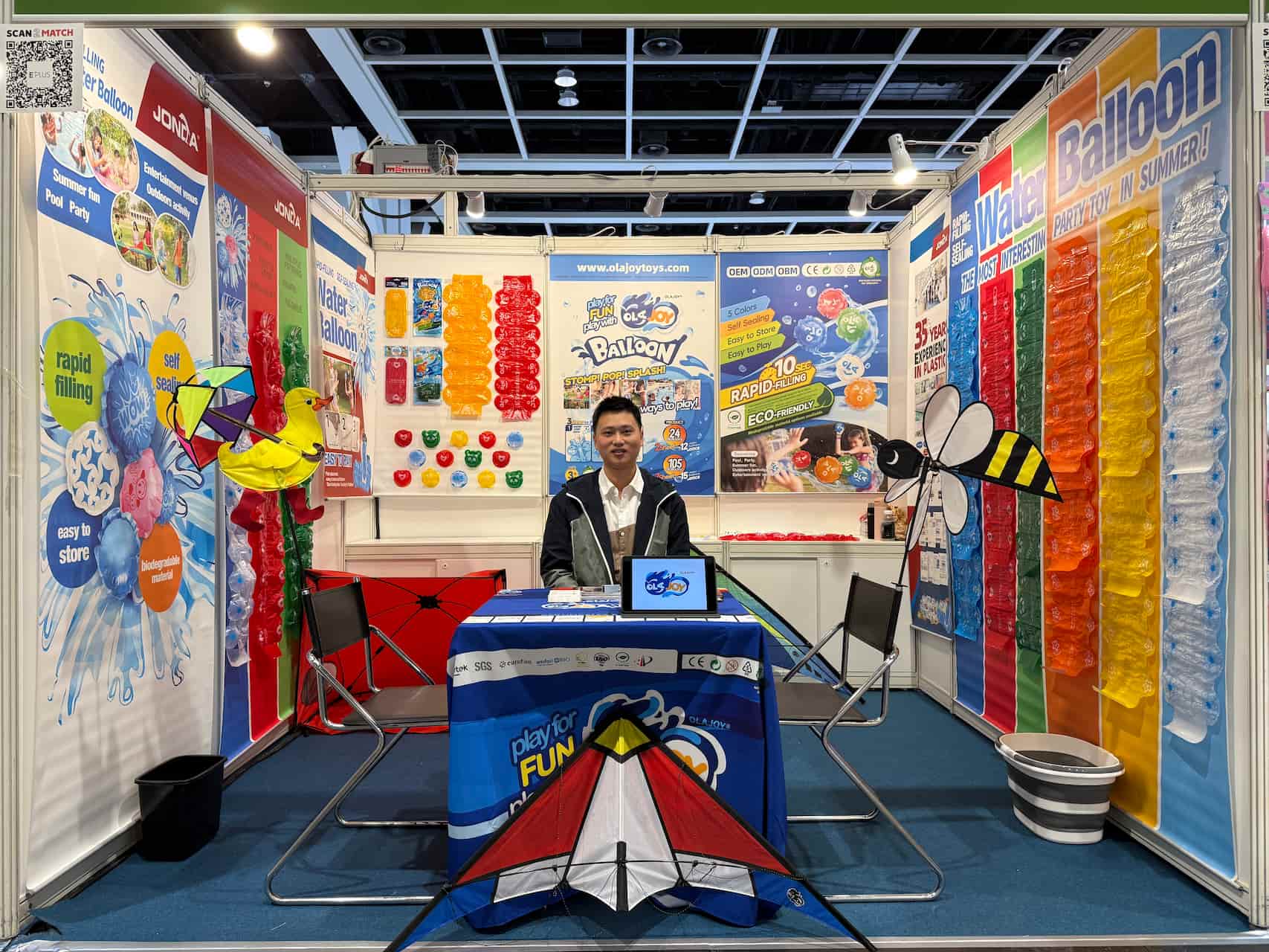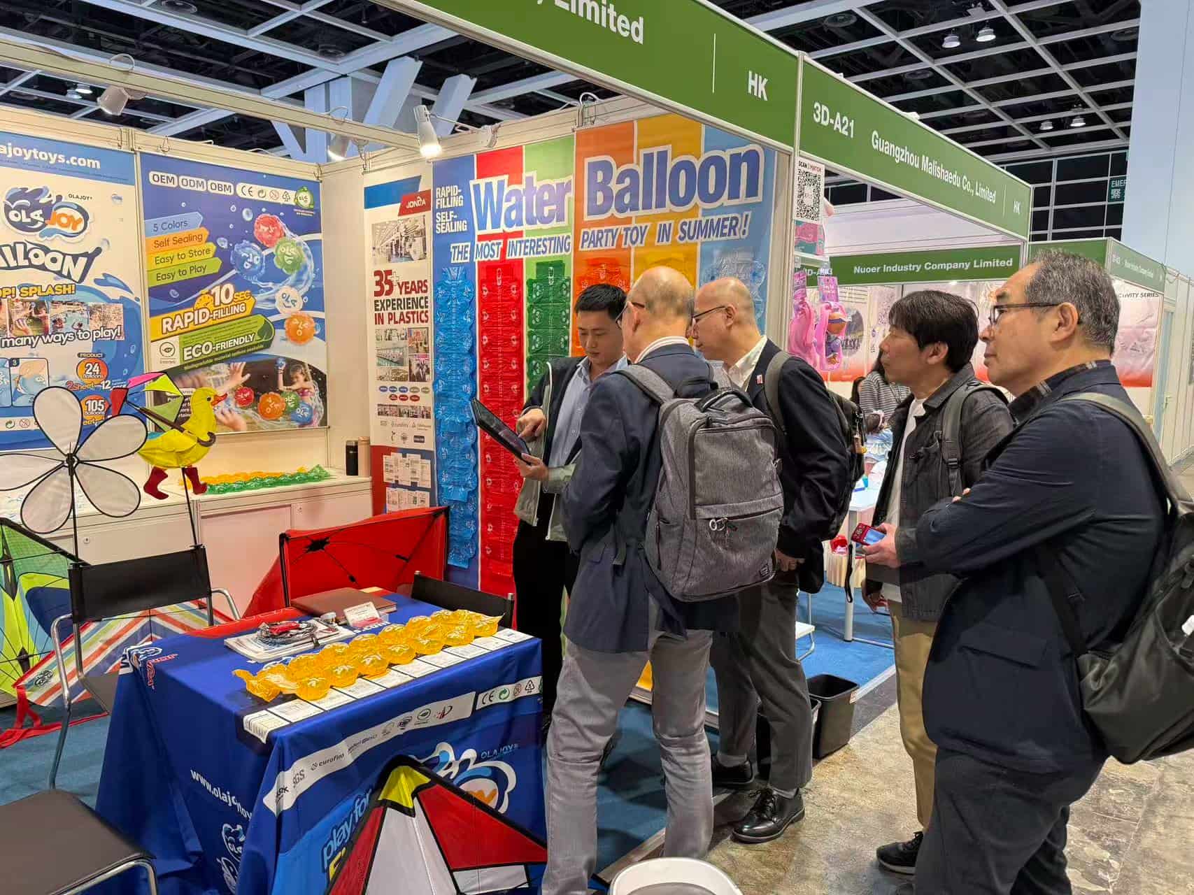 At Booth 3D-A19, we featured our growing collection of sustainable outdoor toys. Our OLAJOY® Balloon once again drew notable attention. With live demonstrations and lively product video, this eco-friendly water balloons attracted consistent visitor interest and inquiries. Some new outdoors items such as pop-up tent, windmills and double-line kites also debuted. Their appealing designs and high quality sparked engaging conversations and keen interest from a variety of attendees.