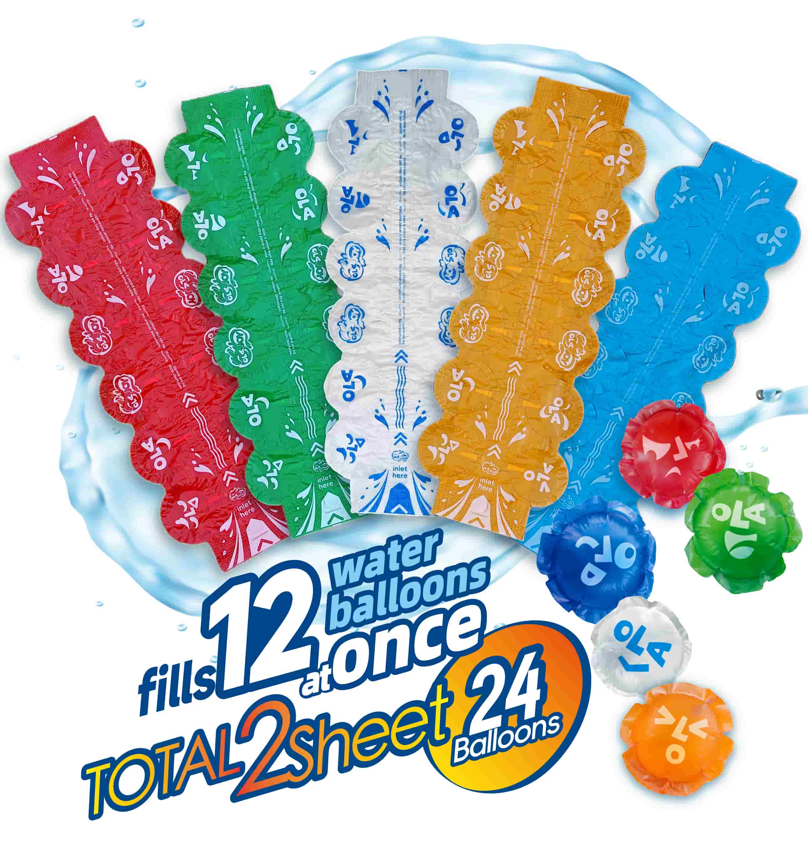 The OLAJOY® Balloon Brand Quick-filling Water Toys, with 24 balls (2 sheets), bring endless fun for water play. Filling in just 10 seconds with an auto-seal design ensures safety and convenience. With a variety of eye-catching designs, these toys are perfect for children aged 3 and above, making them a great choice for family gatherings and friend parties, creating joy across generations.